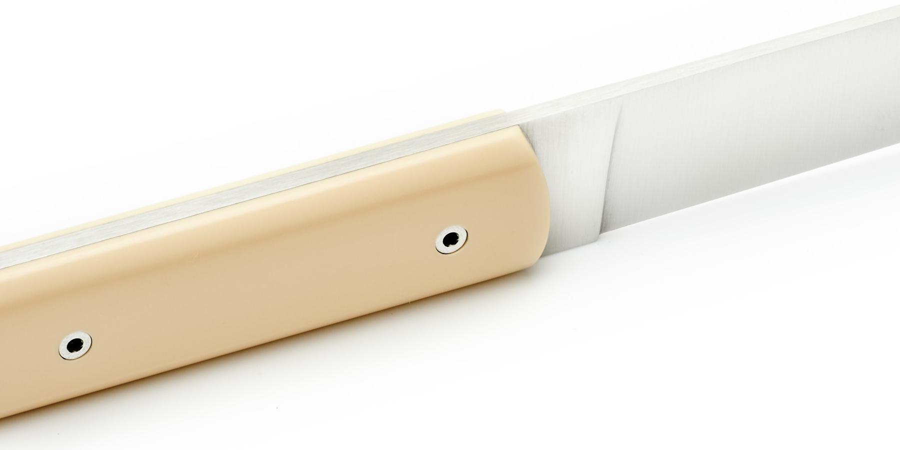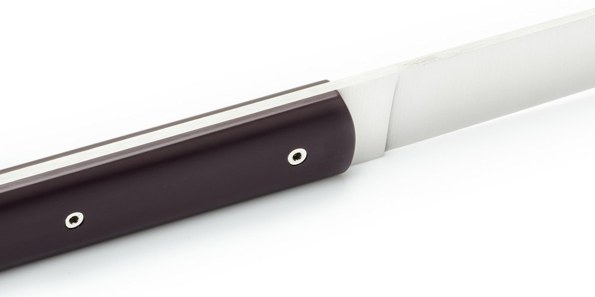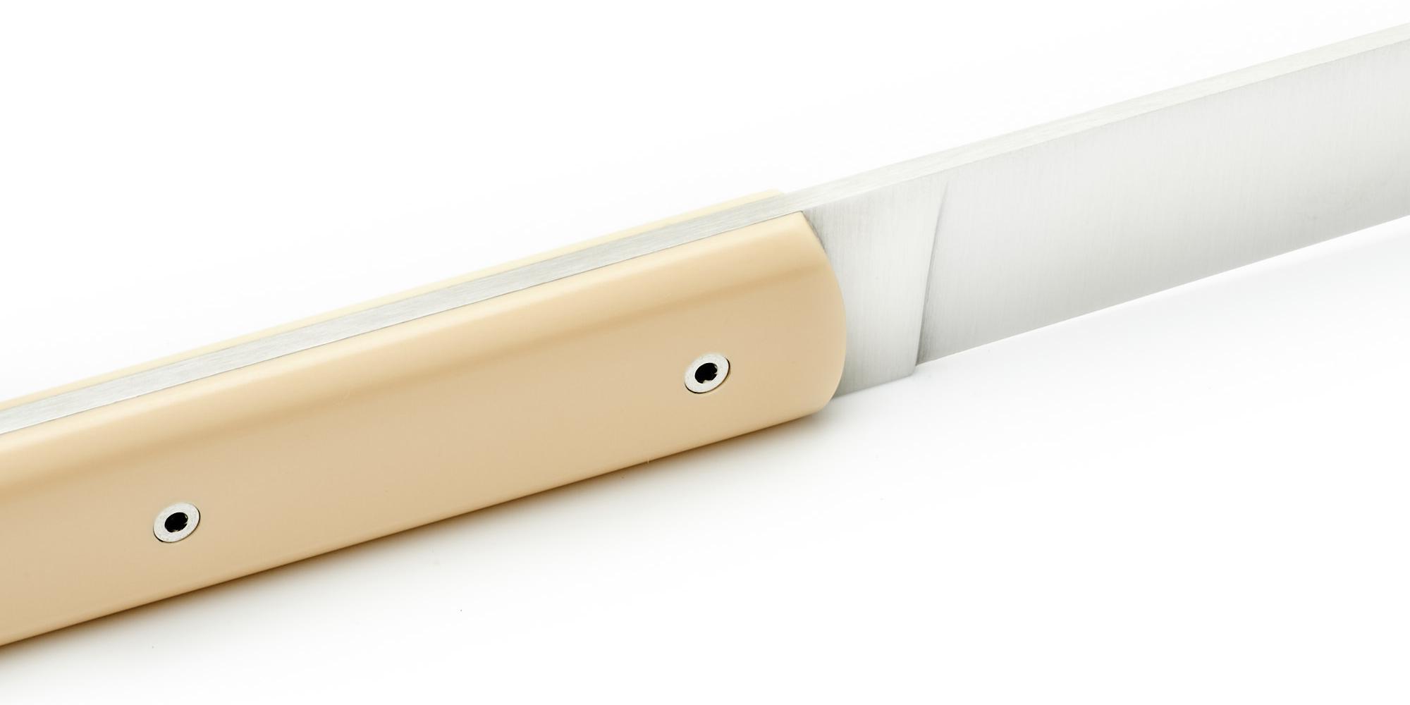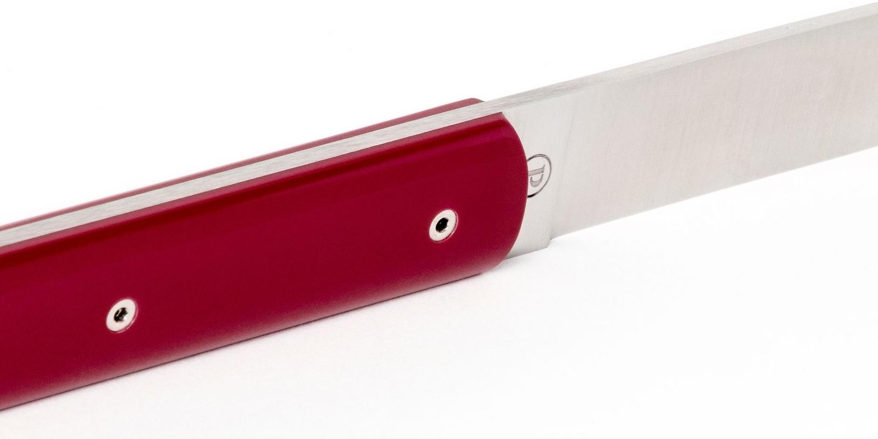 Born from a simple idea: make a table knife with the same qualities of a folding knife. This one is made to seduce beautiful cuts lovers. Sleek and elegant, the 9.47 table knife distinguishes itself by its pure and timeless lines.
