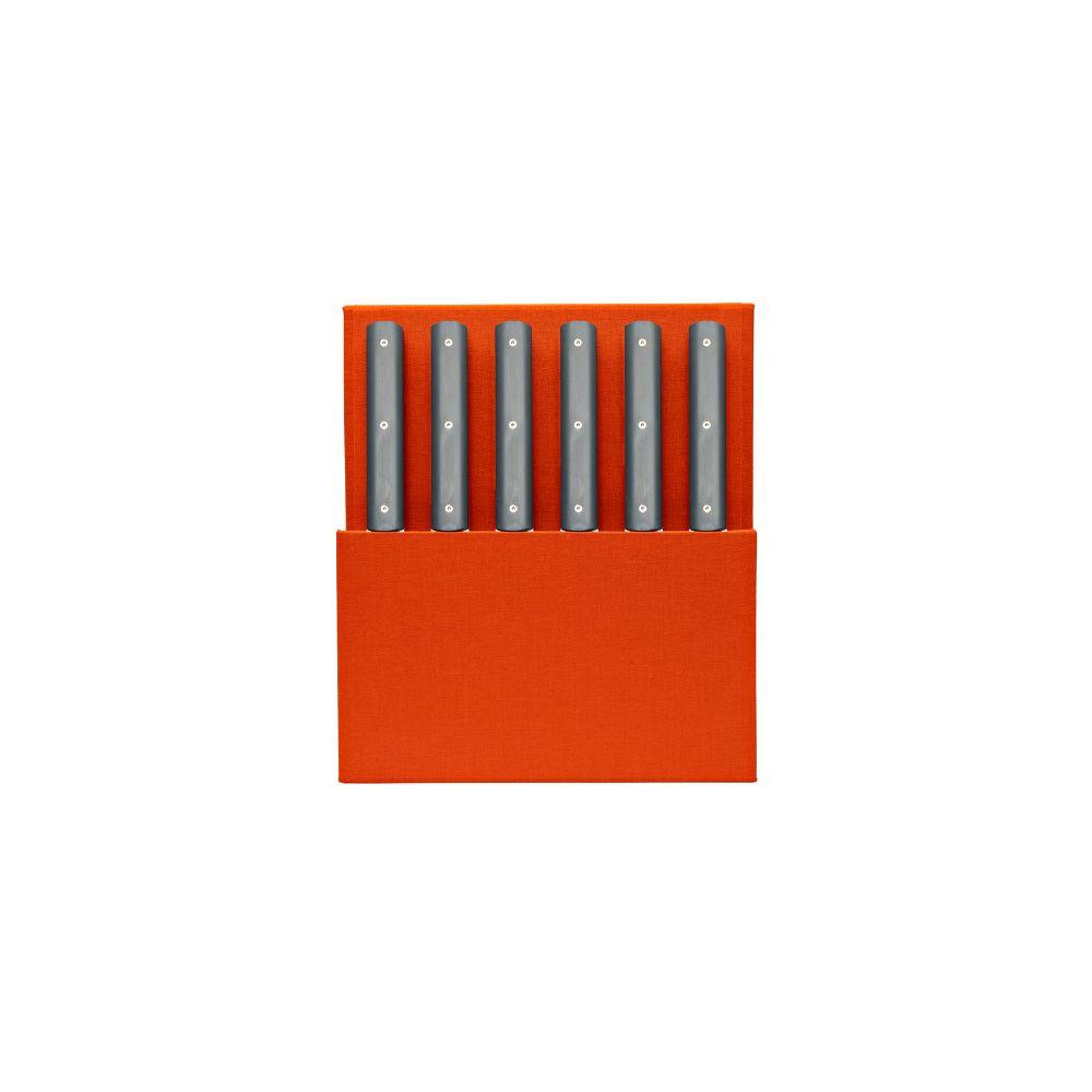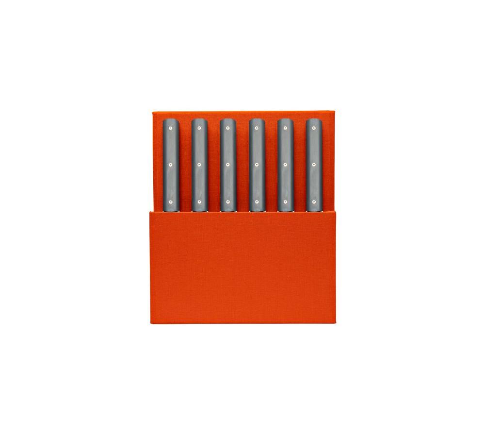 Presented in an orange fabric case, these knives bring variety to your table while maintaining a sense of unity.